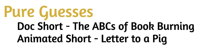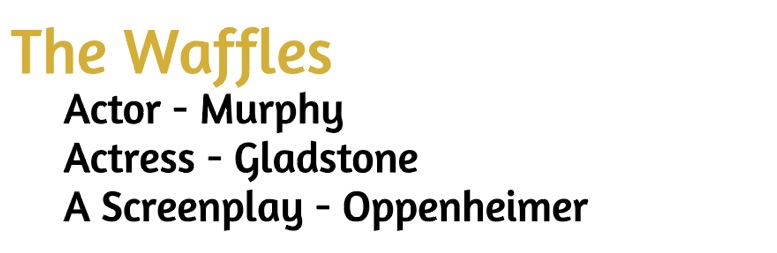 I called this trio the Waffles because I have switched the guess on all of them back and forth many times. Actor is down to either Murphy or Giamatti, and more closely, Actress is either Stone or Gladstone. Up until Friday, I had Stone as my pick. And the viper pit that is Adapted is one I’ve moved from Barbie, Fiction, and Oppenheimer. I’ll take Oppenheimer and guess it wins 8 awards.