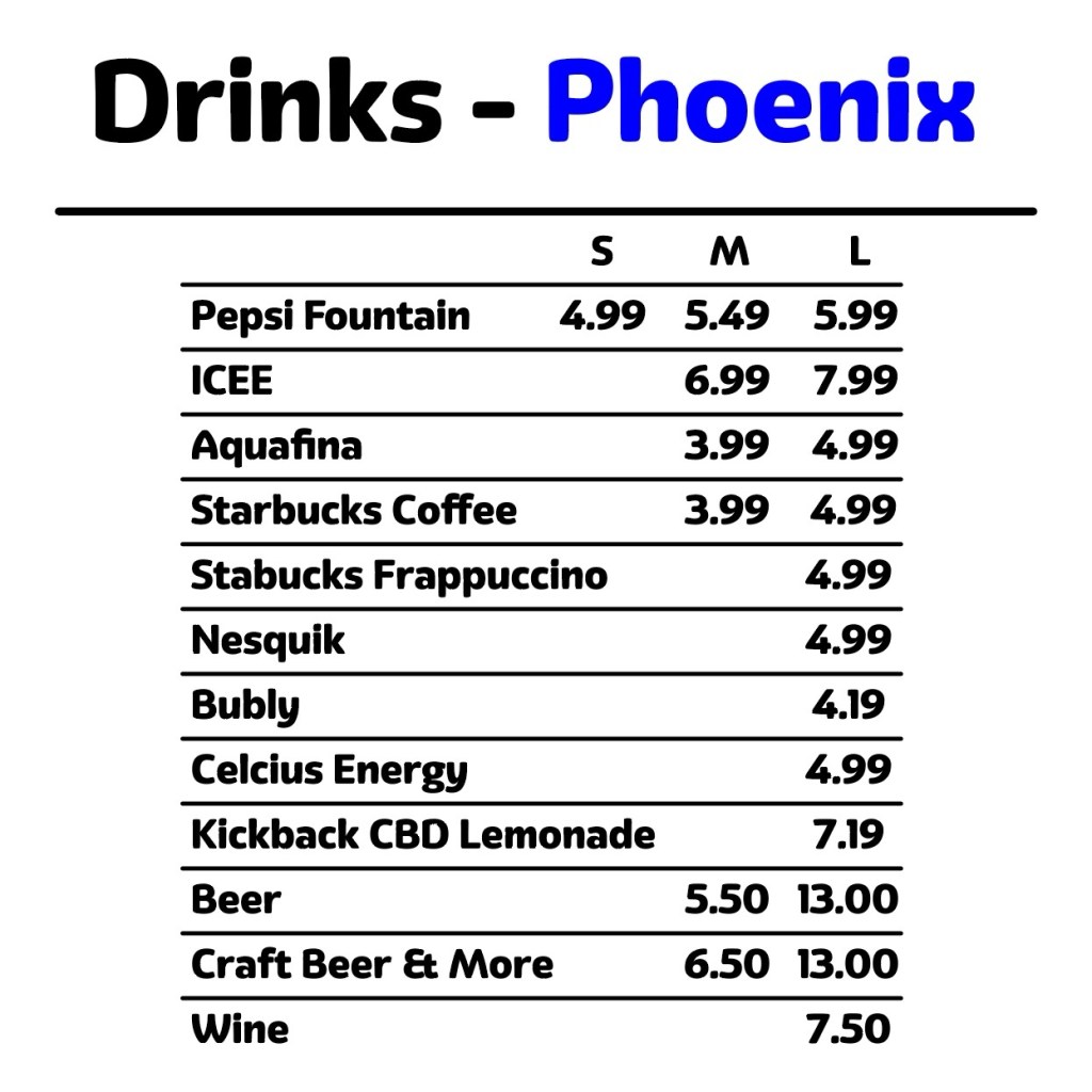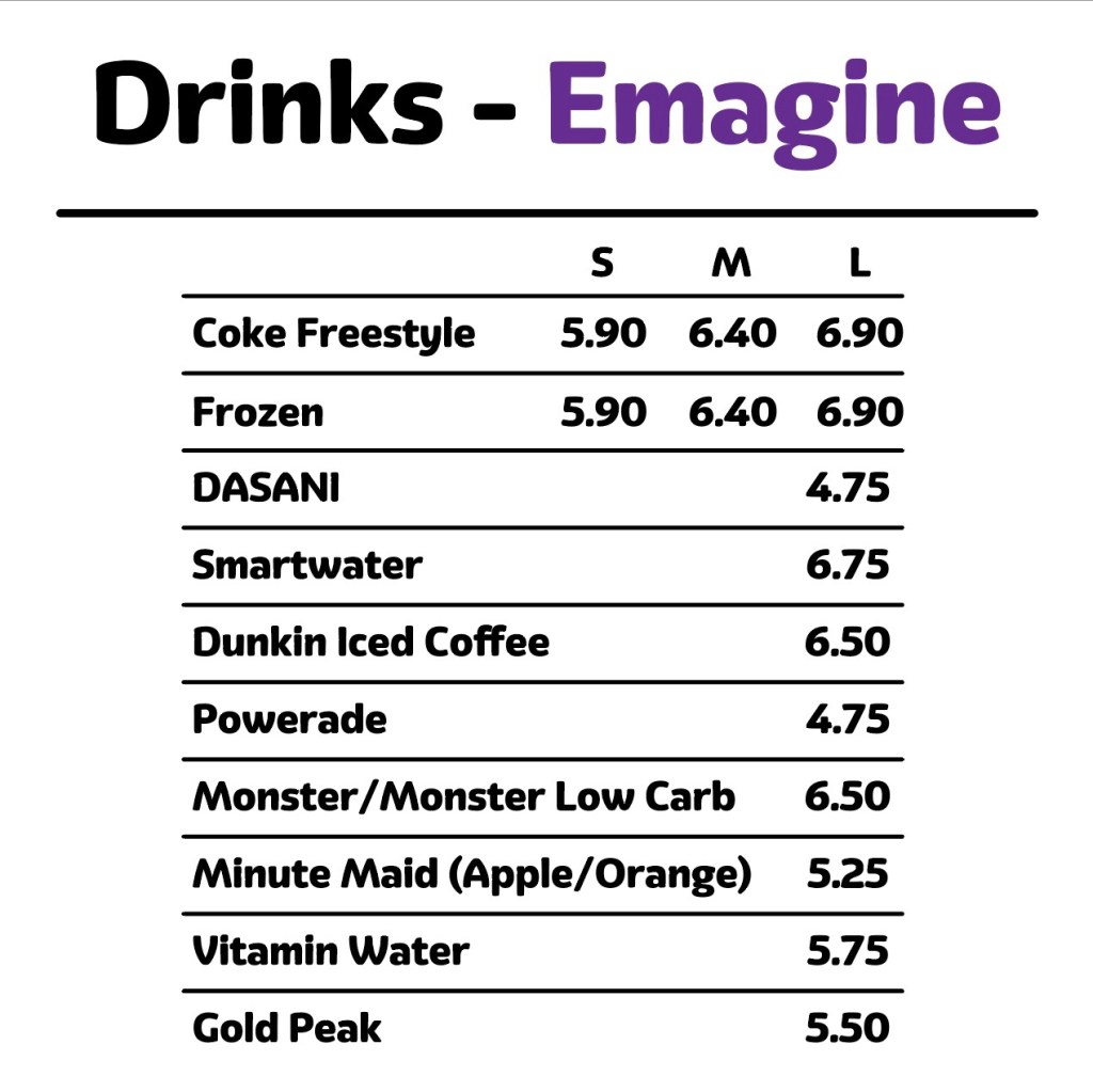 A lot more options here. A small Coke is the most between the theaters that have small drinks (AMC doesn’t). In total 10 options ranging from a 4.75 Dasani, to a 6.90 large pop or ICEE.