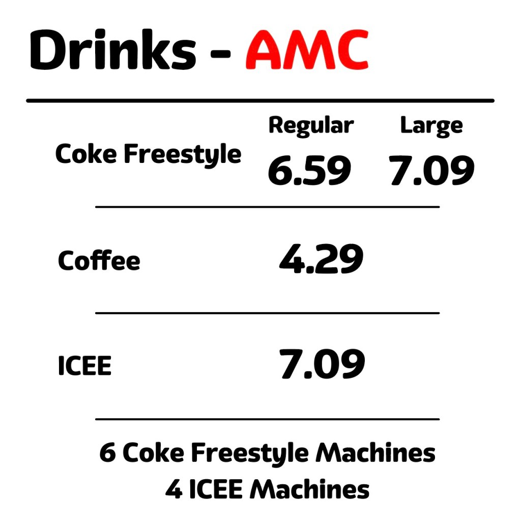MJR comes in with 7 options ranging from a 4.50 water to a 7.00 large pop or ICEE.