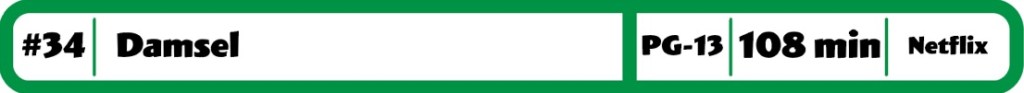 Netflix had to have spent a ton on this one. Too bad it is kind of a bore to sit through. While I think Millie Bobby Brown has been great as Eleven in Stranger Things, she just doesn’t work for me in things outside of Hawkins. She just doesn’t really seem like the tough damsel the movie wants you to think it is. The visuals were ok for a film set in a fantasy setting. To the casting agent who chose Shohren Aghdashloo as the voice of the dragon, cheers. Robin Wright is also here to be the most obvious villain the second she first appears. This was just a very predictable movie that really just seems to exist to get Gen Z to watch Netflix. If this was released in theaters, it would have been a forgotten Dumpuary movie. Now it can live in a world where anything can thrive in. This might have also played better as a series, where it would have been given more room to build out the world. As it stands now, it’s just vague Fantasy nonsense, and if there is one genre that vagueness doesn’t work for, it’s Fantasy.