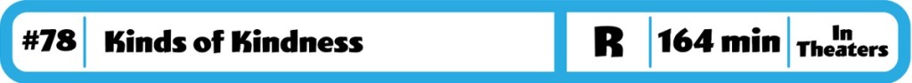 Oh boy. Lanthimos films at their best are awkward, strange affairs. This collection of three stories certainly falls in line with that. However, this one really tested my patience. What is interesting about this one is that our cast (Stone Plemons, Dafoe, Qualley, Chau, Alwyn, Athie) Arecibo all three stories, but they play different characters in each part. Of the three parts, I thought the second one (R.M.F. is Flying) was the best one. It was also the only one I thought could have been expanded into its own film. The first part (The Death of R.M.F. felt like a short story that was expanded as much as it could, and the third part (R.M.F. Eats a Sandwich) was really a waste of time. It was also the section of the film where I really felt the almost 3 hour runtime. This experiment of a film by Yorgos didn’t really work for me, but I will be there when his next film is released next fall.