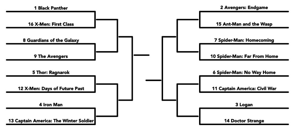 1. Black Panther vs 16. X-Men: First Class