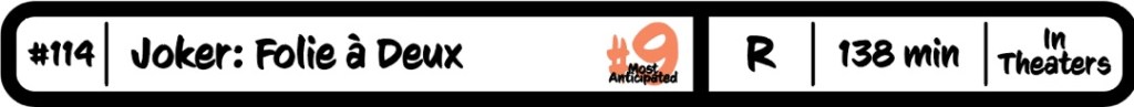 I wasn’t a big fan of the first Joker film. It just seemed like Todd Phillips wanted to make a Batman movie without actually making a Batman film. So you take the most iconic comic villain of all time, and give him a sad origin story. It was bleak, and while I see why Phoenix won the Oscar, I don’t get how so many think it was one of the great films that year (Did we really need to see Bruce’s parents get killed again in this film?). That is a me problem though. Inevitably, Warner Brothers wanted a sequel when the first made $1 billion worldwide, and sequel we got. To up the ante, Lady Gaga was added as Harley Quinn, and I was on board again. Then, it was announced it would be a musical, and I was conflicted. I do love a musical, but nothing about Batman says musical. Shortly after that, it was shared there would only be one original song, making this a jukebox musical. My interest died a little. Still, I’m up for being proven wrong. (See my thoughts on Speak No Evil last month.)