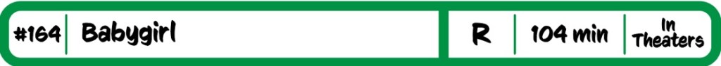 This was the 164th and final film of the year for me, and I didn’t exactly go out on a right note. The was a chore to get though for me, but I don’t think I was the target audience for this, so there is that. In the film, Nicole Kidman’s Romy is CEO of a tech company, and begins an affair with an intern named Samuel, played by Harris Dickinson. What makes it less than normal is that their “relationship” is one of dominant/submissive one. This just passed the point of believability for me. Am I really supposed to believe that on Day 1, and intern will ask the CEO she wants a cookie in regards to her good behavior? Dude would be fired so quick in the real world. The film is kind of making us think Romy has a problem, as the story is really told in her point of view. However, to me, something is wrong with Samuel. His viewing of Romy basically being his plaything is something the film doesn’t feel like exploring, but it was something I picked up on. Also, and this will spoil the ending, Romy would not stay CEO. Someone would have let the news leak. This want a mediocre film to end an honestly mediocre year. It’s fitting.