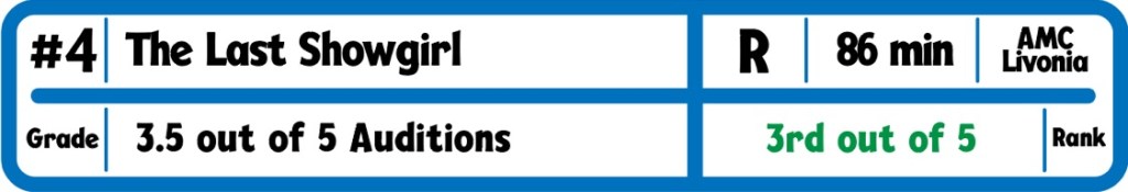 Rounding out our rather small cast is Billie Lourd playing Shelly’s daughter, Hannah. Shelly and Hannah’s relationship is the backbone of this film, as it highlights so many parts of Shelly’s life. She spent 3 decades being part of something she thought was special, and didn’t spend time on things that were really important. Now that her show is ending, and life is about to dramatically change for her, Shelly has to grapple with the repercussions of her focus on her career. As I said before, this is a slice of life film, so the film ends on the final show of Le Razzle Dazzle. Nothing is resolved in the story, and we are just to imagine what happens with the characters. We all know how tough life can be for some, so we can make educated guesses. I liked a lot of this film, but I just wasn’t sure why it focused as much on Curtis’s character as it did. I see why some are calling for Anderson to get a Best Actress nom, and while I don’t quite see that happening, it is great that she is getting the recognition that she has deserved for a long time.
