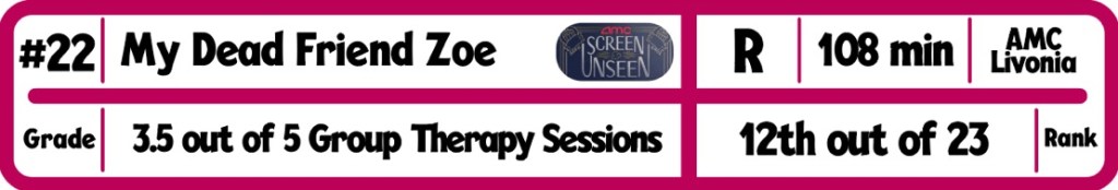 That storyline is the main this film got the grade it did from me. What this film has for me is two separate storylines that do not mesh well together. What we have here is a storyline of grief and needing help, and a storyline of a family’s efforts to tackle a loved one who is developing a cruel disease. While either can make for an interesting film, the two together don’t really work. It is obvious based on the special message that plays during the credits that the Zoe storyline is the important one, so why not focus more on that one. This is still a good film. It just could have been better by focusing more on what was deemed important by the filmmakers themselves.