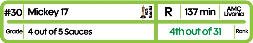 This movie is what the title of this week’s post is referring to. Mickey 17 has had an interesting path to finally being released in theaters. Back in 2022, Bong Joon-ho announced this would be his follow up to his 2019 Best Picture winner Parasite. Warner Bros scheduled it for a March 29th, 2024 release. Then the strike happened and the studio pushed it back 10 months to January 31 of this year. They then pushed it back further to April 18th, but changed the release one last time to March 7th, switching dates with Sinners. So, was all that delay worth it now that it is out. Yes. This was really good. Set in the future, Robert Pattinson plays Mickey Barnes. Mickey decides to be and “expendable” on a space ship sent to colonize a new planet. As an “expendable”, when he is killed, a new copy of him with all his memories is printed out. So, in the ship, he is the guinea pig, and is used to test for viruses or sent out to any dangerous situations that could harm a normal person. The only real good thing he has is Naomi Ackie’s Nasha, who becomes his girlfriend pretty quickly into the journey to Nilfheim. Leading this quest is Kenneth Marshall (Mark Ruffalo) and his wife Ylfa (Toni Collette). Kenneth is a failed politian with a very loyal supporter base, and he is also an egomaniac.