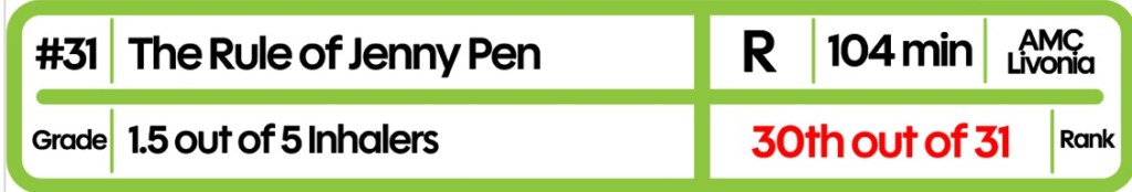 This was just an unpleasant film to sit through. In this Geoffrey Rush’s Stefan is a judge who suffered a stroke while on the bench. He is sent to a nursing home that is being terrorized by John Lithgow’s Dave. Dave also has a puppet with him almost at all times he speaks through/to named Jenny Pen. When you watch the trailer, you get the sense there is something spooky with the puppet, but I will just spoil it here: it’s just a puppet and Dave is a psychopath. That would be interesting, but there is nothing else in the film that works. Stefan is insufferable the entire duration of the film, and you really have nobody to root for. More glaring is that in the nursing home, there is no security and the staff just wander around whenever. I get it’s a movie, but after three times of Stefan telling the staff Dave is doing bad things, and the staff acts like he is just insane and needs to go to bed, you lose the will to care about the plot. I have never walked out from a film, but I came very close for this one. There was only another couple in the theater when I saw this, and when we were leaving I mentioned I should have left an hour ago. They just chuckled and said they thought the same thing. What a dud.