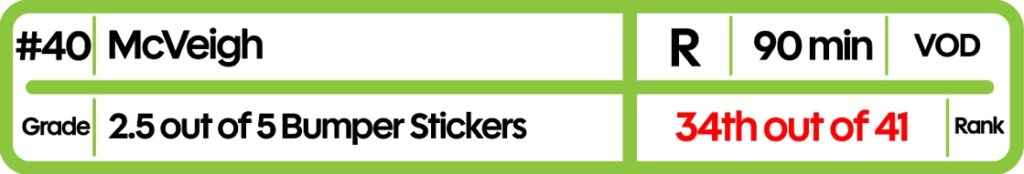 A film about Timothy McVeigh could have been an interesting film with the right context. This film is as boring and uninteresting as the evil man who committed that horrible action in Oklahoma City. Allie Allen plays McVeigh, and he is just there as the film moves around him. We never really get into his head. We just follow along as he puts his awful plan into motion. Thankfully, the main film ends as he is making his way to the Alfred P. Murrah building. The film then concludes with a newsreel montage of the attack. I’m not sure who really wanted this film. It’s categorized as a psychological thriller, but it very much is not that. I’m not making an argument we need a film about that monster, but if you started the story to when he was in the Gulf War, and then show how Waco cemented his revenge plan, this could have been a better film. Again, we don’t ever need to see it as it would add nothing to society.
