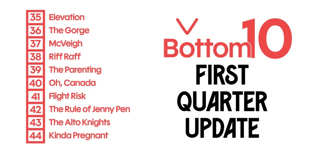 Of the Bottom 10 right now, all ten were a waste of time. From McVeigh not having a reason to exist, to Oh, Canada really testing my patience, these ten all were one that weren’t even fun in a bad way like Madame Web was a little last year. The Alto Knights was by far the most disappointing, as a De Niro Gangster film is usually a slam dunk for me. Now, for the more fun section of the rankings.