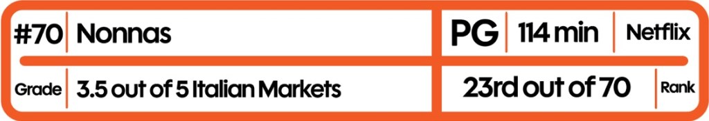 Following my last movie watched, anything would be better. Thankfully, this was a good one. This film is based on Joe Scaravella, the owner of an Italian restaurant that operates with actual grandmothers as the chefs. Vince Vaughn plays Joe, and he is pretty good in this. He really conveys the grief and sadness that losing a loved one entails. The supporting cast is good in this too. Our nonnas are played by Susan Sarandon, Lorraine Braccco, Talia Shire, and Brenda Vaccaro. I will say this about the film: it’s aggressively Italian. It is also beat to have two of the nonnas be Connie Corleone and Karen Hill. There is an extra level to this when you learn Stallone considered Sarandon for Adrian in Rocky, before going with Shire. This was a pretty straightforward Netflix movie, that was also kind of comforting.