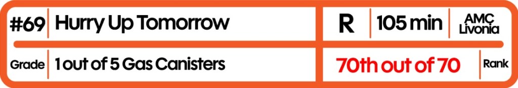 First, the premise: The Weeknd gets held hostage by a fan in a hotel after a one night stand. That is it. That is about 15 minutes of plot spread over a little under 2 hours. What we have to cover the rest of this just basically a music video that serves as a companion piece to his 6th album of the same name. On that standpoint, it’s a success. As a competent movie, it very much does not. Jenna Ortega plays the jilted woman, and she is all over the place. She plays Anima like a sociopath, and it is just insane. At one point she explains to The Weeknd what Blinding Lights and Gasoline really mean, while dancing to them, as he is tied to the bed. Just wild. Also just as baffling, why is Barry Keoghan in this as Abel’s manager? Why this? The biggest question is for the director, Trey Edward Shults: what happened? It Comes at Night and Waves were very good, competent films. Why choose this vanity project that is only here to help see an album? I understand The Weeknd is really the director here, so why take this gig? It also makes it more baffling when you learn he was co-writer of the film. This was a painfully dull “film” that probably would work better if you were a fan of The Weeknd, which I am not. I am just the person who thought it wouldn’t be that bad. I was wrong. Michael Jackson’s Thriller music video is more a movie than this. There are still 6 and a half months of films left this year, but I shudder to think there will be another worse than this one this year. I warned you.