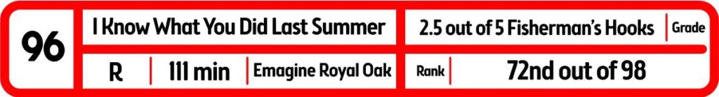 When Scream was rebooted a few years ago, It seemed inevitable that I Know What You Did Last Summer and Urban Legends would follow suit. Here we are now with the first of those two being released, and this is a tricky one. While being in the same reboot/sequel realm that the new Scream films are in, this feels so familiar if you have watched the original 2 in the series. This film has forgotten all about 2006’s I’ll Always Know What You Did Last Summer, and you should too. Back in this one are the survivors from the first two films, Julie (Jennifer Love Hewitt) and Ray (Freddie Prize Jr.), but our main focus is the group of friends that make a unfortunate decision one 4th of July evening. Of the new group Chase Sui Wonders and Madelyn Cline come off the best. It could be my nostalgia kicking in, but this new group isn’t as good as the original four, and this movie does not want you to forget about that original four either. It’s why this feels more like a sequel than a reboot. If this is you first time watching one of these, you are probably going to miss so things. It’s a film where the 1997 original especially is required viewing for a full experience with this new entry. As for this one, it’s fine enough for the most part. You get your red herrings as the bodies start to pile up, and the killer still has the ability to show up silently anywhere. The kills are good, even though they give away the first one in trailer that would have been a nice shocking moment. I was with this one for a good part of the the runtime, but when the reveals start to happen at the end, boy howdy did it lose me. To it’s credit, it does make sense when you look back at almost all the kills in film. It just annoyed me so much it sunk the whole film for me. There is also a mid-credits scene that works for me and the girl I was sitting next to, but we are from the generation that it would work for. Again, watch the first two entries in this franchise before you watch this. It will make things more enjoyable when you get all the references. Much like the Scream/IKWYDLS franchises in the 90’s/00’s, while Scream has the formula to keep churning these out, this film kind of showed that the I Know films don’t really have a lot to them universe wise. The mid-credits scene teases a sequel that feels like it could be interesting, but it also seems like they are going to run back I Still Know, much like this one not only takes the name of, but also takes the plot of the 97 original.