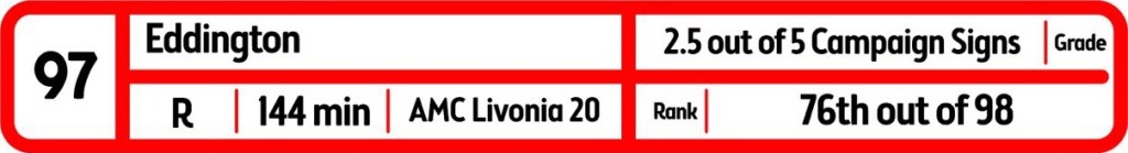2020 was a fun year. The loneliness, paranoia, protests, and a virus that was affecting the whole world. What a time to be alive. It is this time period that Ari Aster has set his 4th feature film. I am a big fan of his first two films (Hereditary and Midsommar) but his third one (2023’s Beau is Afraid) happened to be the worst movie I saw that year. So, I went into this one very cautiously. The plot is very simple to boil down to. Set in May 2020 in the town of Eddington, New Mexico, we see a standoff between a sheriff, Joe Cross (Joaquin Phoenix) and the mayor, Ted Garcia (Pedro Pascal). Joe decides to run for mayor because he doesn’t like wearing a mask in public (like a lot of us didn’t in 2020). There is a past between Joe, Ted, and Joe’s wife Louise (Emma Stone), but we never really see what that is. We are told at one point, but we are then told it is a lie, so cool. There is also Louise’s mother living with them during COVID, and a cult leader (Austin Butler). There is just so much in here that just fun. Do we really need to see the BLM protests again? All of this is supposed to be a satirical black comedy, but it just doesn’t work for me. It just sent me back to how awful that year was. Then, about halfway through, it becomes a different film, and that part of the film just wouldn’t end. You could easily cut 40 minutes out of this film and it will still work. I just don’t understand what happened after Hereditary and Midsommar that got us these last two films from Aster. I don’t imagine this film is going to make a lot of money in the Box Office, so where does that leave things for him after two films that were very divisive, and didn’t make money for the studio? Maybe he should make another horror movie. That seems to be where thinks work better for him.